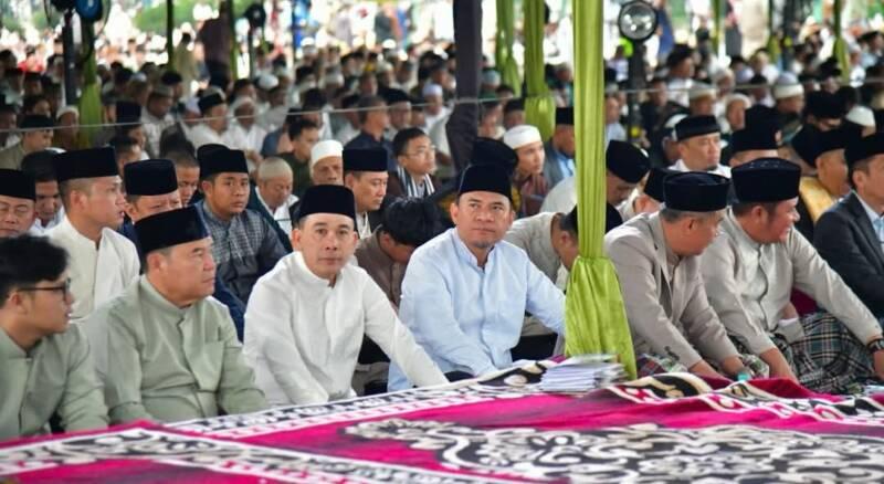 Anggota DPRD Provinsi Sumatera Selatan Ustaz Muhammad Toha, bertindak sebagai khotib dalam pelaksanaan Salat Idul Fitri di Masjid Al-Ikhlas Pakjo, Sabtu (21/3/2026). Dalam khutbahnya, ia menekankan pentingnya modal kesabaran dalam menghadapi perjuangan hidup.